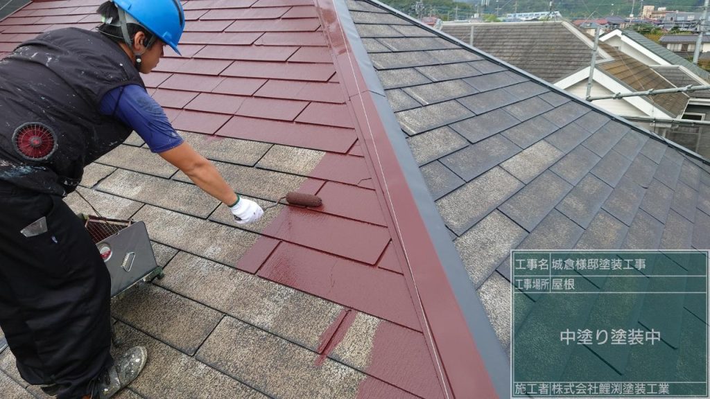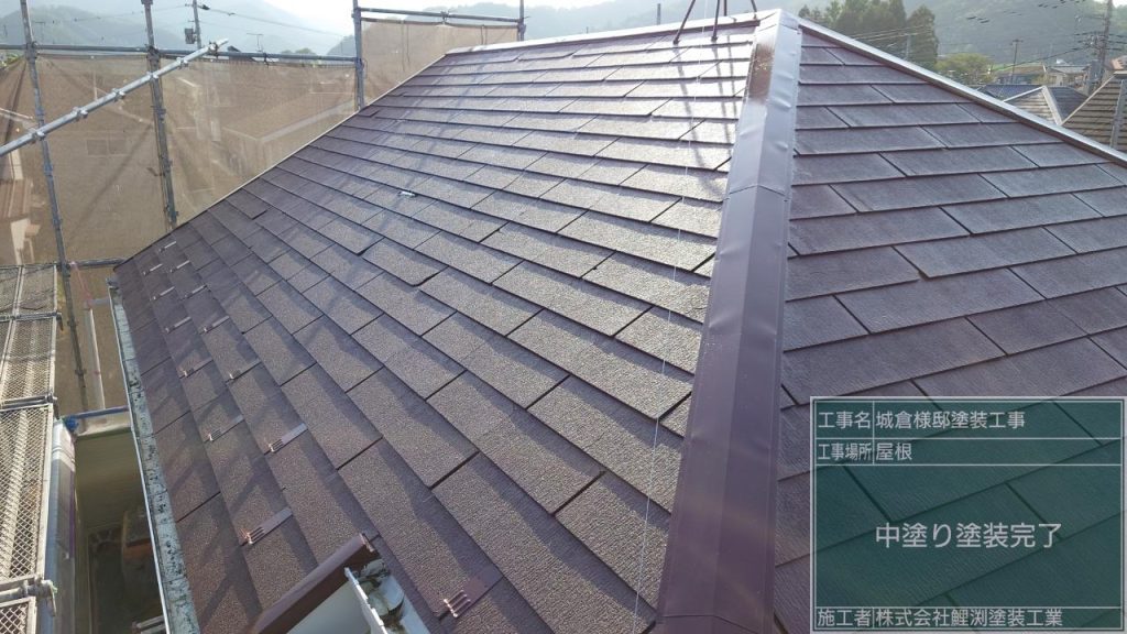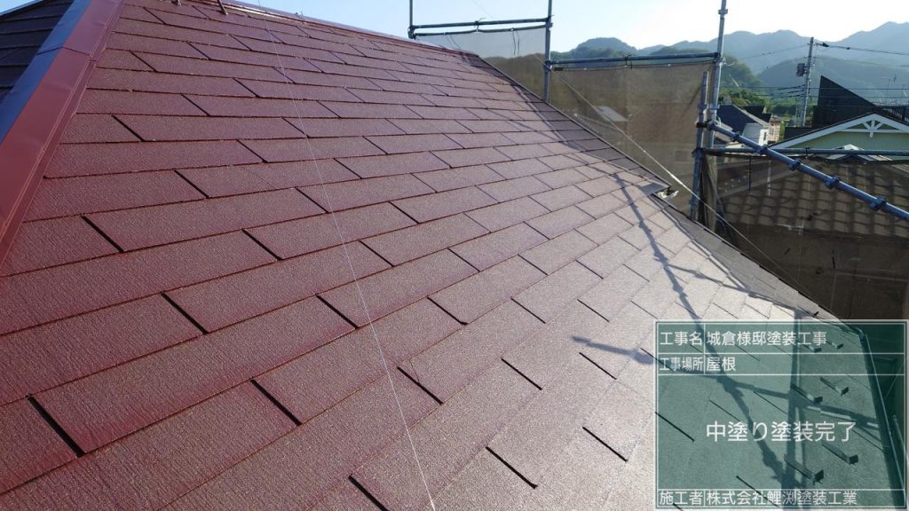 スレート屋根の中塗り塗装をしました。