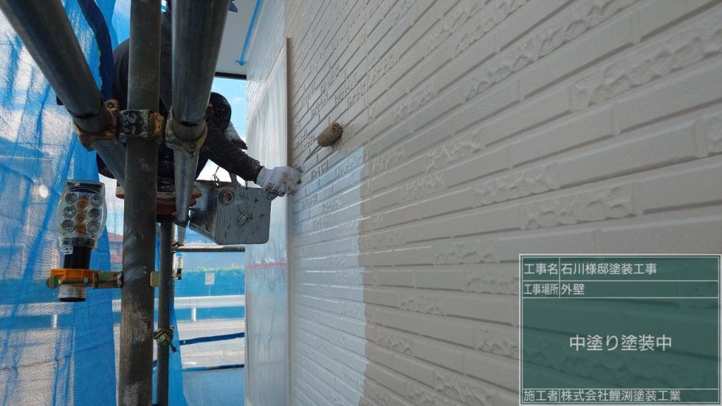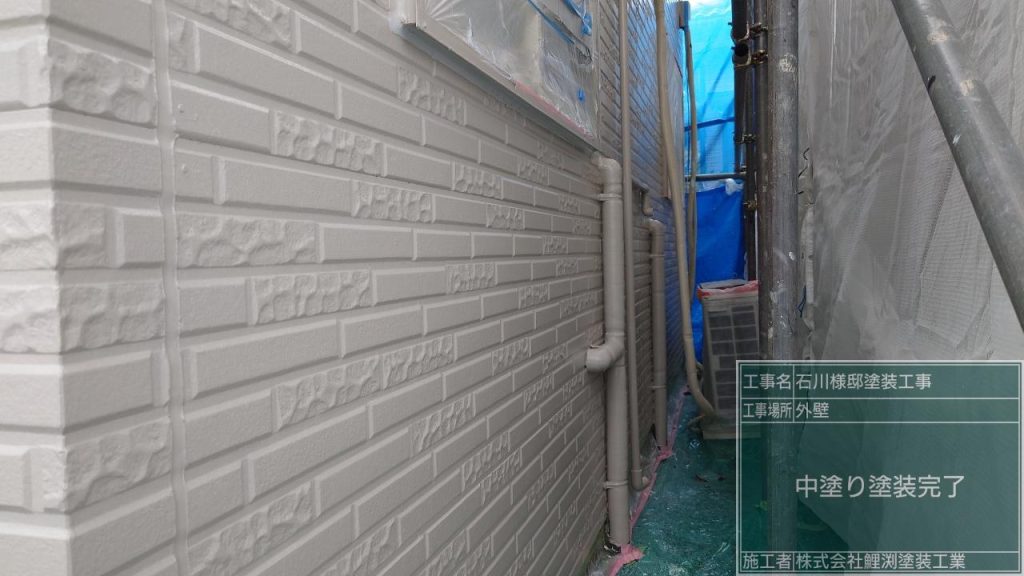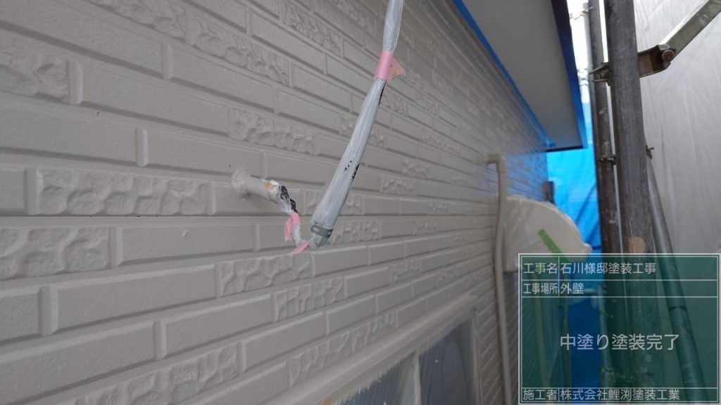 深谷市で外壁の中塗り塗装をしました。