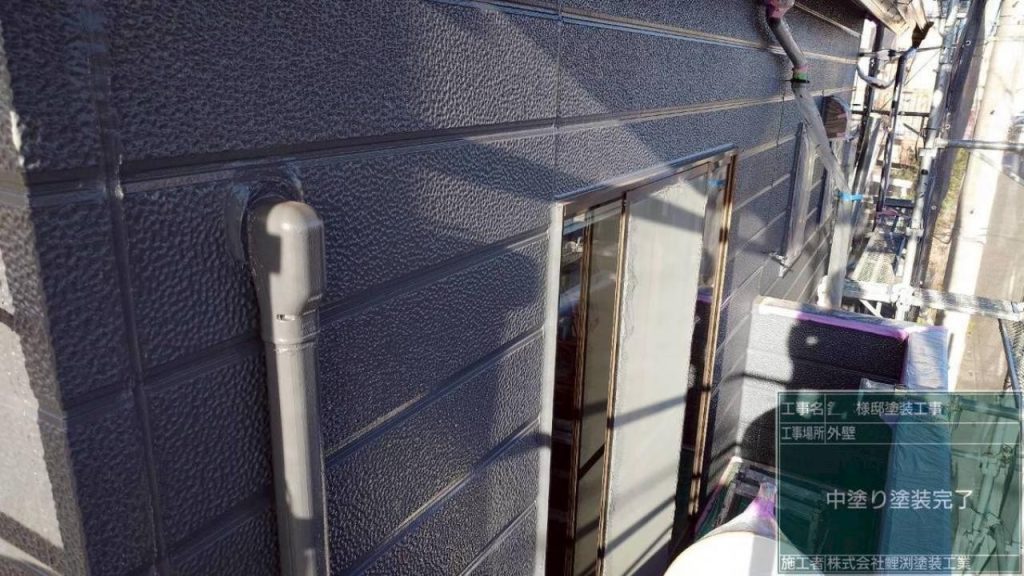 坂戸市で外壁の中塗り塗装をしました。