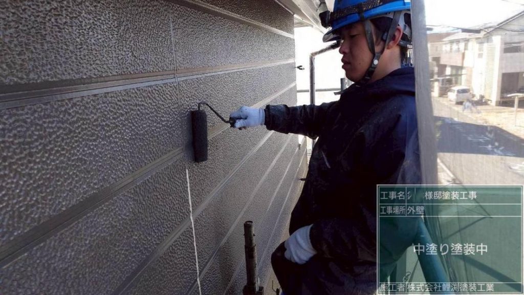 役割: 下塗り材で整えられた下地に、均一な厚みで塗料を塗布していきます。この工程で、塗料の色ムラを防ぎ、塗膜に厚みを持たせることで、紫外線や雨水から外壁材を守る本来の機能を十分に発揮させます。