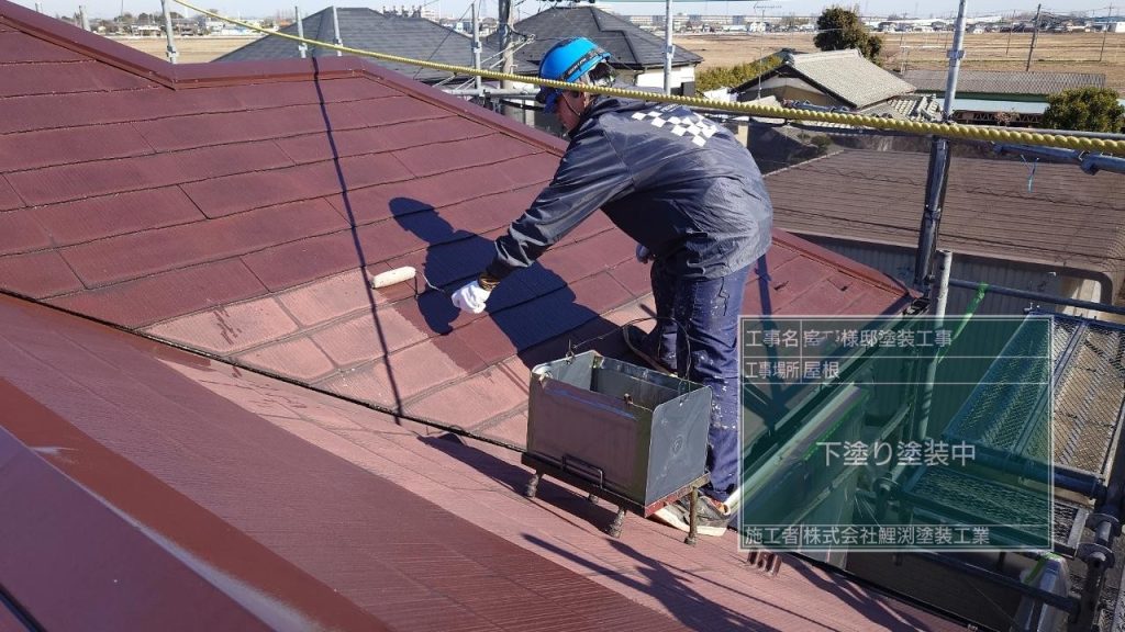 川越市で屋根の下塗り塗装をしました。